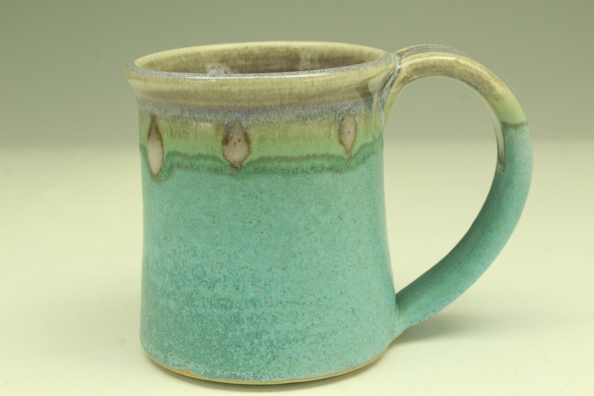 Start a day with your coffee with this nice handsome handmade mugs. This mug has a large handle for comfort of your hand and the calm turquoise color. This mug is my customers' go-to mug for many years.