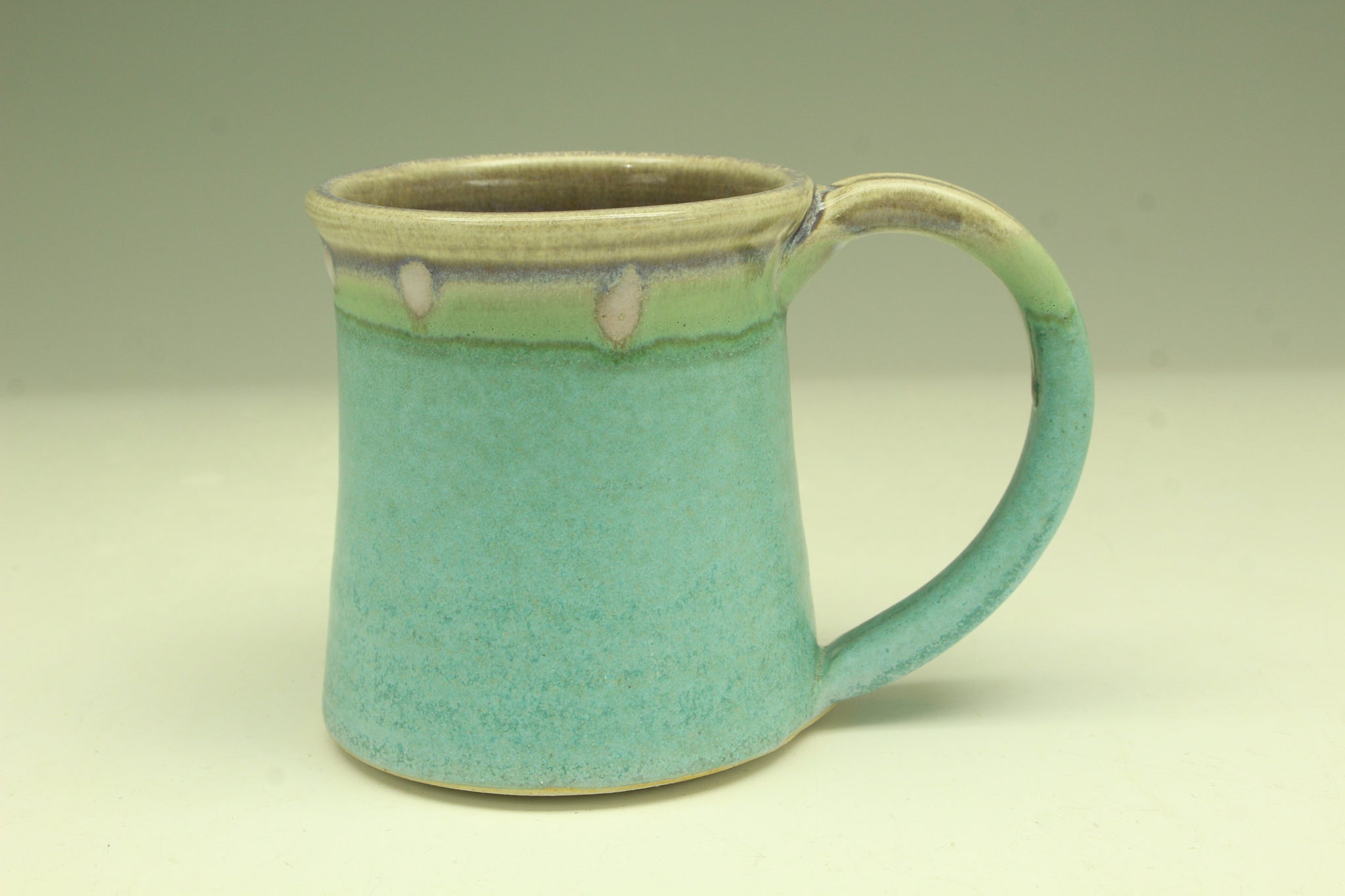 Start a day with your coffee with this nice handsome handmade mugs. This mug has a large handle for comfort of your hand and the calm turquoise color. This mug is my customers' go-to mug for many years.